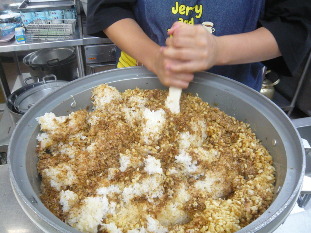 こちらは「たぬきおかかおむすび」を作業。