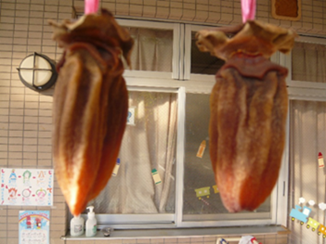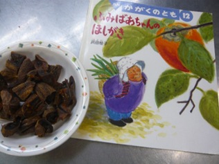 こんないきさつがあり、いず海第一こども園では干し柿の食育を数年前から行っています。